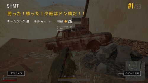 違うんだそんなつもりじゃなかったんだ(言い訳 久しぶりのドン勝はSquad。ASIA TPP レートなしの初戦。 基本的にFPPはASIA、TPPはKR/JPでやってるんだけど、この時はASIA FPPやった後でサーバー切り替えるの忘れてた。のでレートなしだったもんだから勝った…